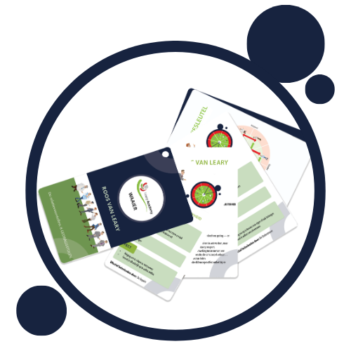De Leary Academy is dé expert in Nederland op het gebied van de Roos van Leary. Als gespecialiseerd opleidingsinstituut leren wij professionals de interactie tussen mensen te doorgronden en effectief te beïnvloeden. Wil jij als L&D-professional deze methodiek zelf toepassen in jouw trainingen? Bij een inspirerende sessie horen praktische, interactieve tools. Wij ondersteunen je graag met hoogwaardige materialen die jouw trainingen naar een hoger niveau tillen. Maak kennis met onze Roos van Leary tools