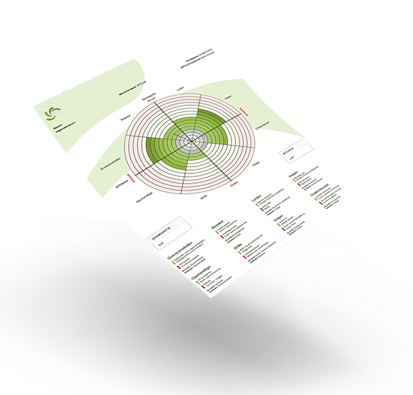 In de cirkel wordt de intensiteit van het gedrag weergegeven in 3 kleuren, waarbij het volgende geldt;
