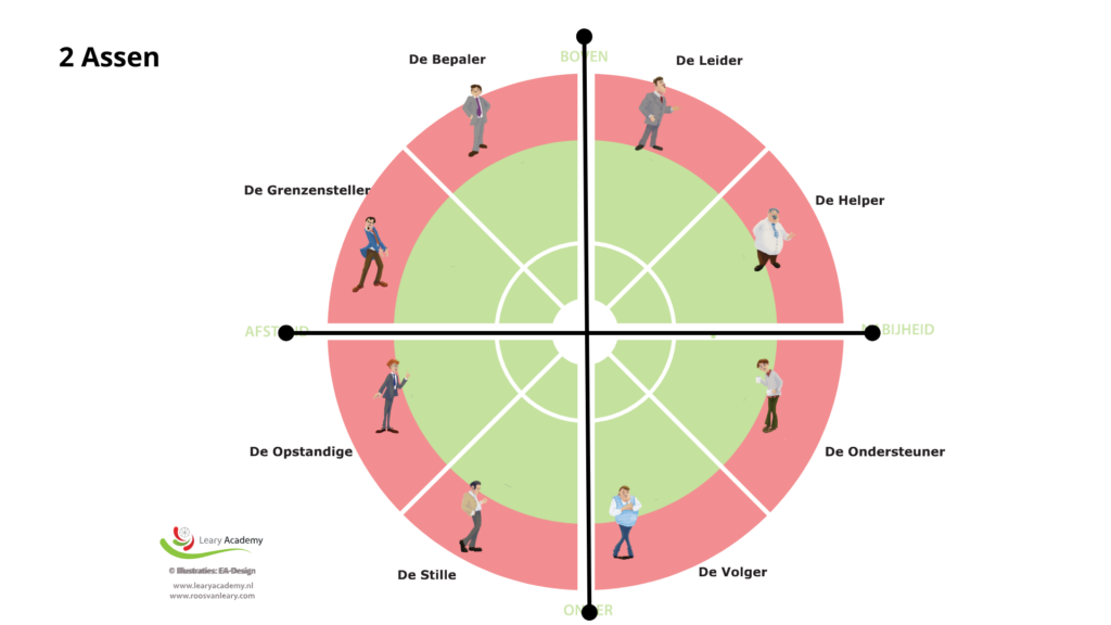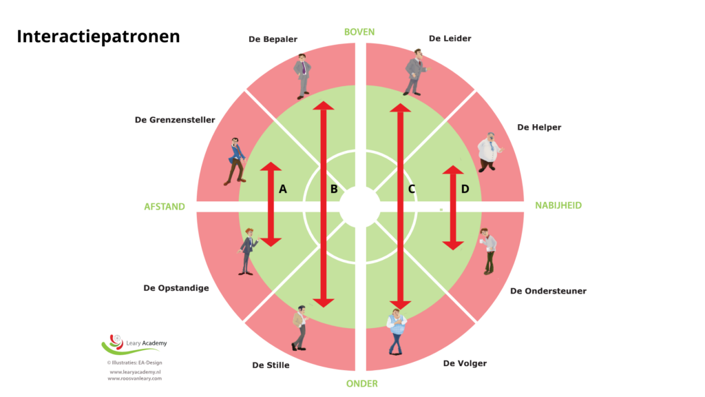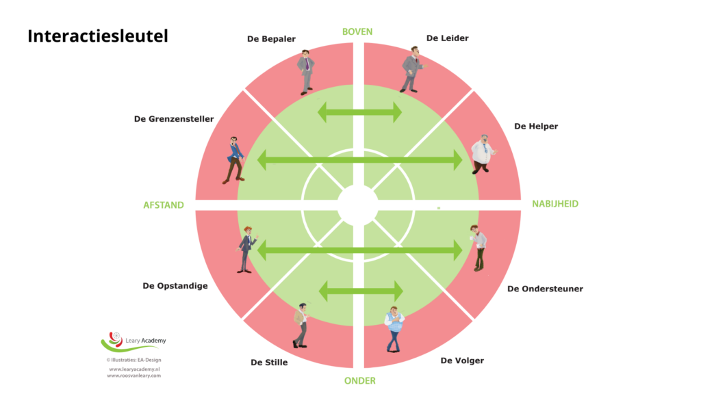 De Roos van Leary laat zien hoe gedrag gedrag oproept. Het model onderscheidt acht gedragsstijlen die we allemaal in ons hebben. Sommige stijlen gebruiken we moeiteloos en voelen vertrouwd, terwijl we andere vermijden of lastig vinden.